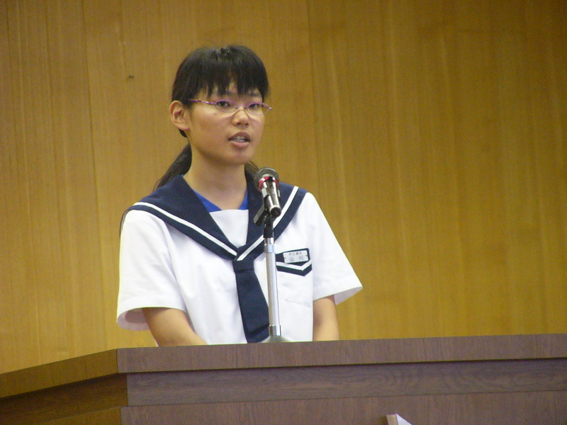 学年ごとの代表が1学期の反省と夏休みの目標を発表してくれました。また,県大会に出場する卓球部の激励会も行われました。