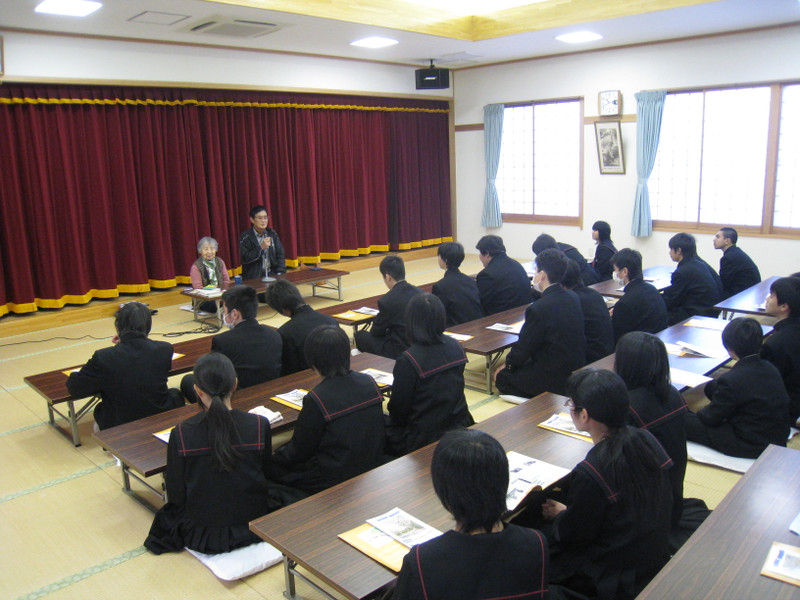 昨年度から人権学習の一つとして,ハンセン病問題について全校生徒で学習しています。今年度は昨年の学習をもとに,星塚敬愛園での交流学習が計画されました(2・3年生)。実際に園内を歩きながらその様子を自分の目で見て説明を聞いたり,元ハンセン病患者の上野さんのお話を直接聞かせていただいたことで,ハンセン病問題に対する正しい認識や理解を深めることができたと思います。この経験を生かして,人間としての人権感覚をさらに,お互いに,磨いていけたらと思います。